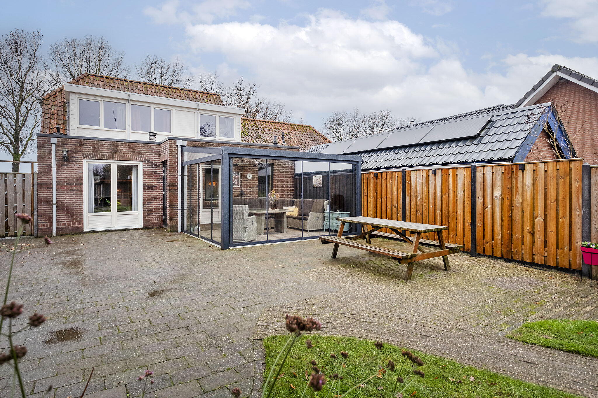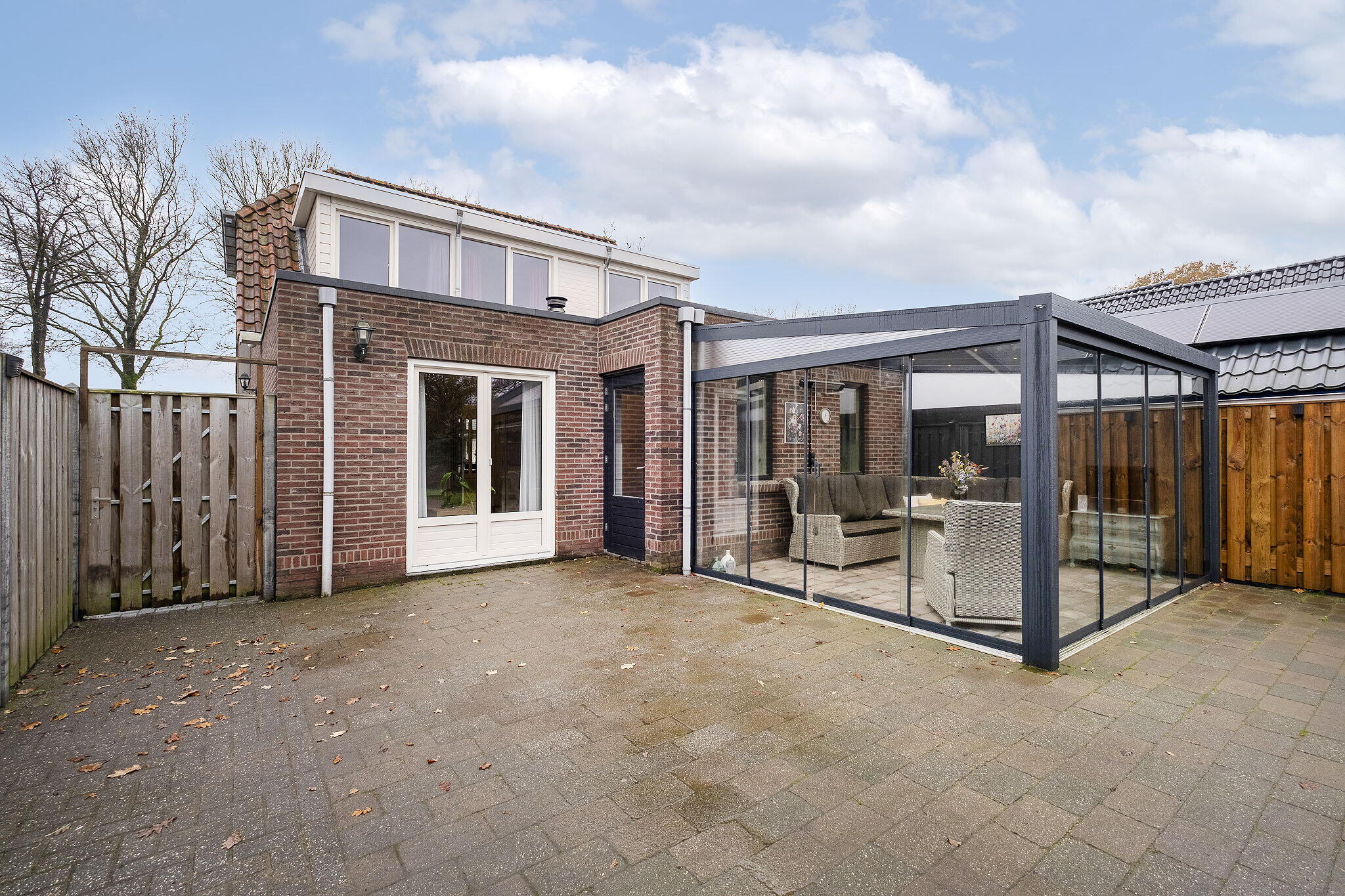 Aan de achterzijde van de woning bevind zich een sfeervolle overkapping (uit 2024) met uitzicht over de tuin, welke afsluitbaar is met glazen deuren.