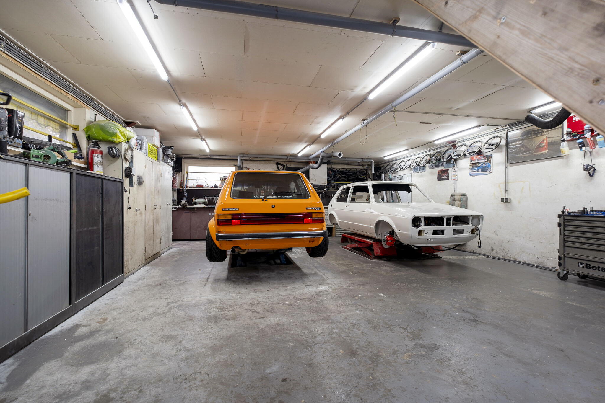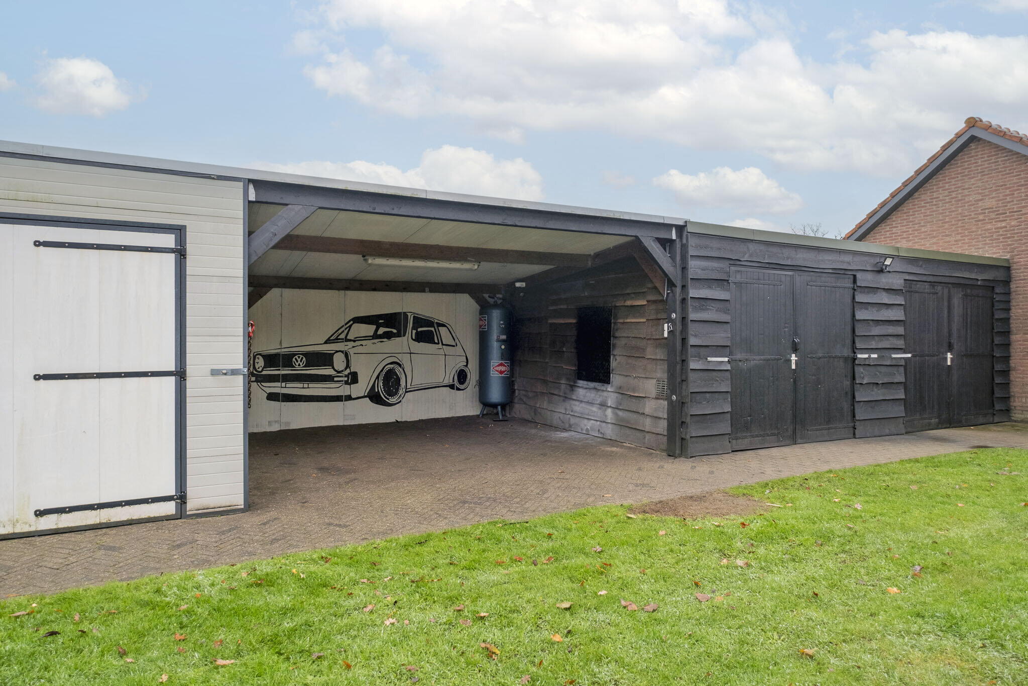 Naast de woning staat een royale, geïsoleerde multifunctionele vrijstaande garage (ca. 79 m2) met zolderverdieping (ca. 25m2). Deze garage beschikt o.a. over krachtstroom, een betonvloer, eigen toilet en keukenblok. Achter deze garage zijn nog drie schuren gerealiseerd (ca. 16m2, 17m2 en 18m2) en een brede carport.